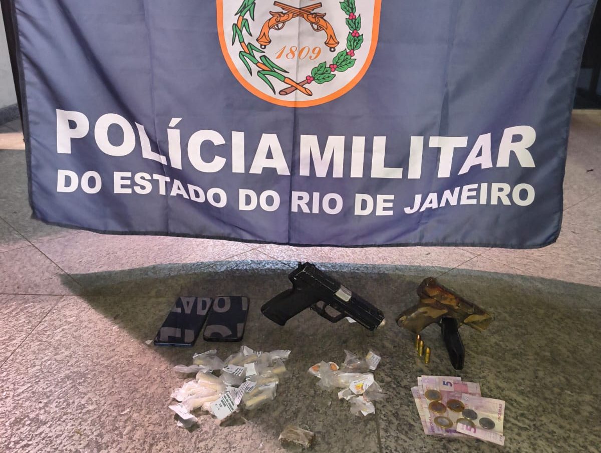 Na operação, os agentes apreenderam uma pistola da marca CANIK com numeração raspada, um simulacro de arma de fogo, três munições calibre 9mm, 16 pinos de cocaína, uma bucha de maconha, dez pedras de crack, dois aparelhos celulares e R$ 36 em espécie. Todo o material foi encaminhado para a 89ª Delegacia de Polícia (DP), onde o caso foi registrado.