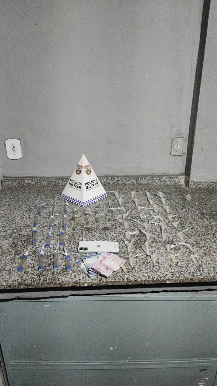 Durante a abordagem, os policiais apreenderam 27 tiras de maconha, 33 pinos de cocaína, 3 pedras de crack, R$ 25 em espécie e um aparelho celular. Um laudo preliminar confirmou os pesos: 100 gramas de maconha, 40 gramas de cocaína e 0,6 grama de crack.