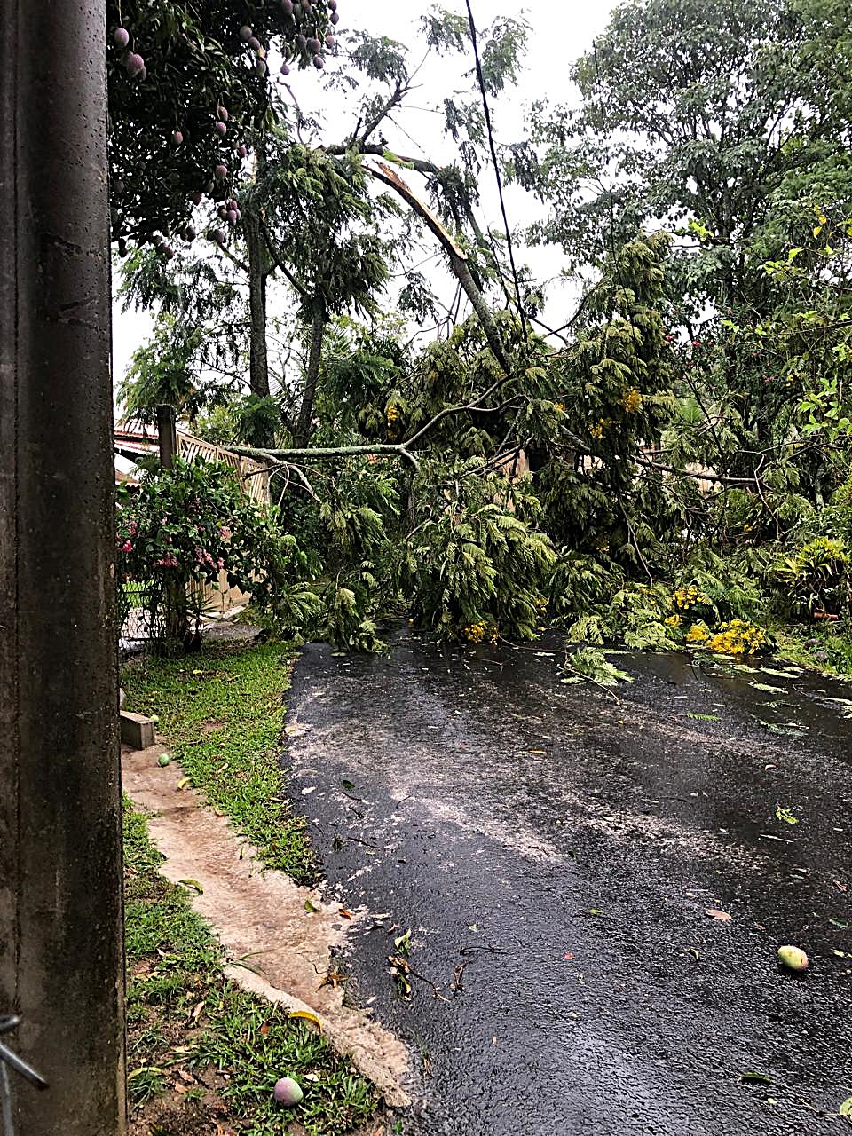 De acordo com as informações divulgadas, ocorreram cinco quedas de árvores, sendo uma de grande porte que chegou a obstruir uma via. Além disso, duas residências tiveram os telhados danificados em decorrência da força dos ventos.