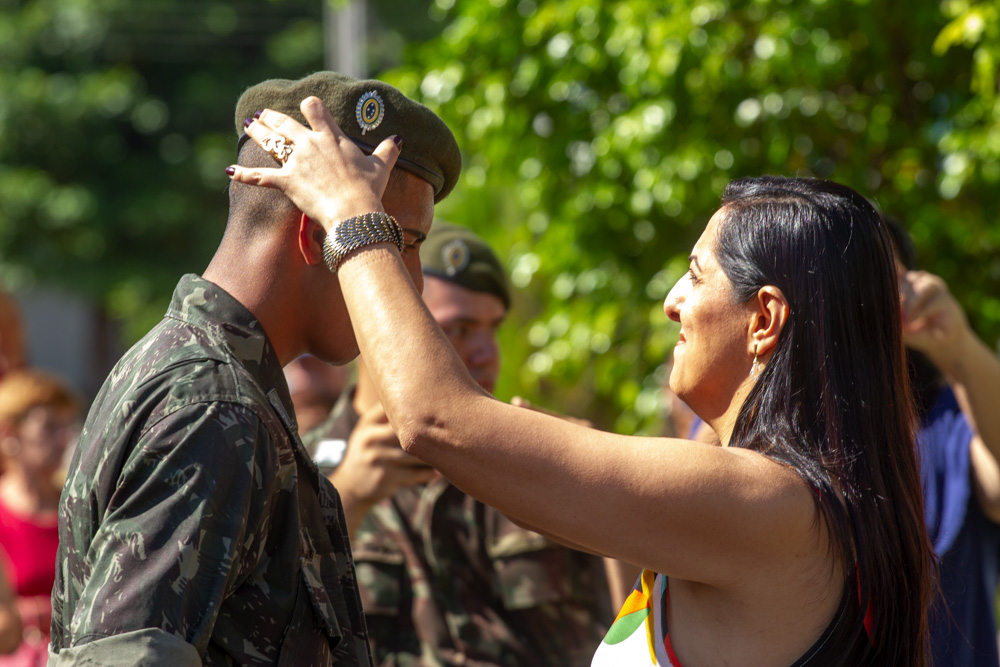 Ana Paula Rodrigues era uma das presentes no evento. Ela é mãe de Daniel Pereira Rodrigues, 18 anos. Ela contou que seu filho sempre sonhou em entrar para o Exército Brasileiro. “É muito gratificante ver um filho querendo se formar, pensando no próximo. Era o sonho dele vestir a farda e é emocionante o ver marchando. Passou um filme na minha cabeça dele pequeno, e, a gente percebe o quanto o tempo passa rápido, nesse momento ele está aí, crescendo e seguindo um caminho bom”, disse orgulhosa, afirmando que foi uma grande felicidade quando seu filho a escolheu para ser madrinha e entregar a boina de ingresso no Tiro de Guerra.