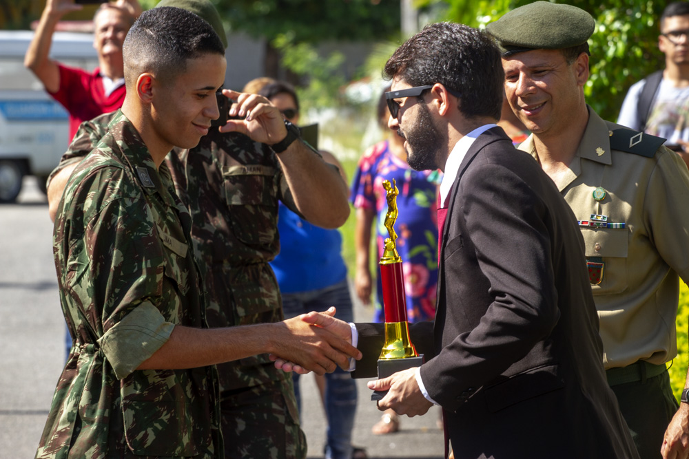 O homenageado por se destacar na prova de Curso de Formação de Cabos (CFC), o recruta atirador Pedro Zamluti, de 18 anos, contou como foi ser homenageado no evento. “Receber essa honra mostra que o desempenho e a força de vontade nos faz chegar além. Sempre fui uma pessoa muito correta, então ter a oportunidade de está servindo, é um enorme prazer”, contou, explicando que o desempenho na prova de CFC, mostra quem está habilitado para fazer o curso. “Entre os 40 atiradores é feita a seleção através de uma prova física e teórica. Agora irá iniciar o curso com dez pessoas e mais adiante terá a formação para os cabos”, disse.