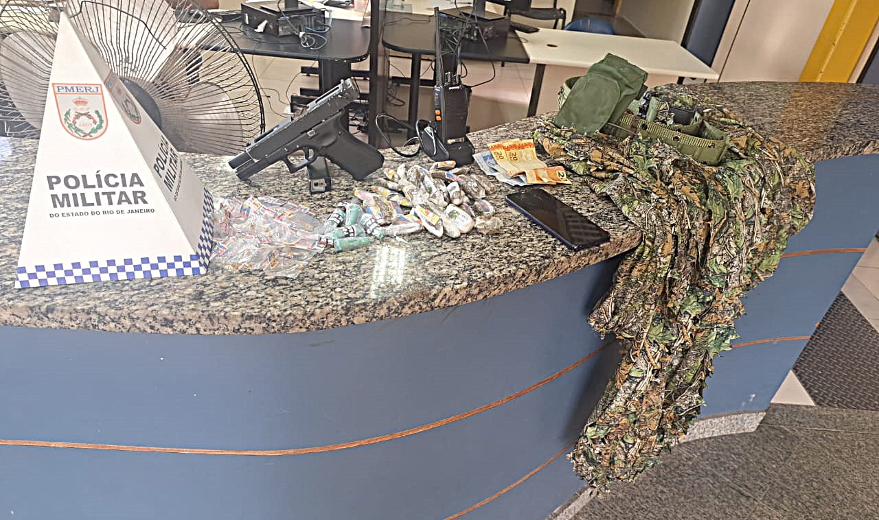 Segundo a Polícia Militar, após o acompanhamento pelo sistema aéreo, as equipes flagraram os três adolescentes em atitude suspeita na Rua José Ferreira. Ao perceberem a aproximação das viaturas, eles tentaram fugir para o interior de uma residência, mas foram alcançados e detidos. No imóvel e na área externa, os policiais encontraram drogas, dinheiro e materiais utilizados pelo tráfico. Foram apreendidas 32 pedras de crack, 31 trouxinhas de maconha, cinco pinos de cocaína, além de R$ 44 em espécie, uma réplica de pistola, uma base de rádio transmissor, um celular e uma roupa ghillie, vestimenta camuflada utilizada para dificultar a visualização no mato.