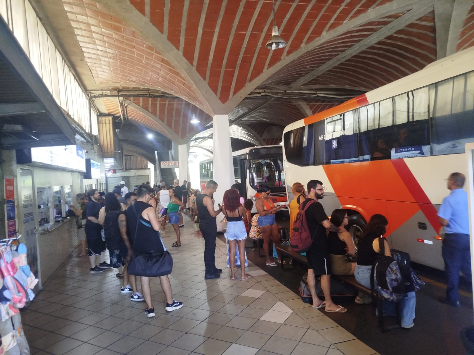 A manhã desta segunda-feira, dia 29, foi de intenso movimento na Rodoviária Comendador Geraldo Ozório, em Barra Mansa, onde turistas fizeram filas nos guichês para garantir passagens para cidades do litoral como Angra dos Reis, Mangaratiba, Rio de Janeiro e Itaguaí. Além dos que ainda estavam comprando os bilhetes, muitos também já estavam embarcando rumo a esses destinos para aproveitar os últimos dias de 2025 e a virada de ano. Para atender a demanda, as empresas responsáveis pelas viagens aumentaram em quase 60% a frota com horários extras que devem permanecer até o dia 31.