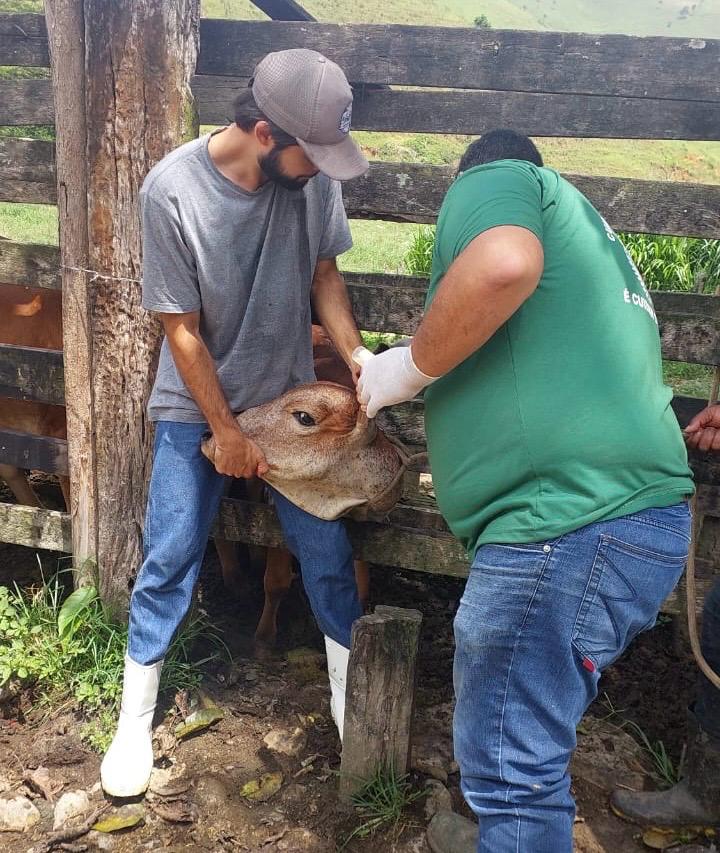 A vacinação é obrigatória para bezerras fêmeas bovinas e bubalinas com idade entre 3 e 8 meses. Em 2026, a imunização pode ser feita com a vacina B19 — que exige marcação na face do animal com o algarismo final do ano (“6”). A aplicação deve ser realizada por médico-veterinário cadastrado no órgão de defesa sanitária animal.