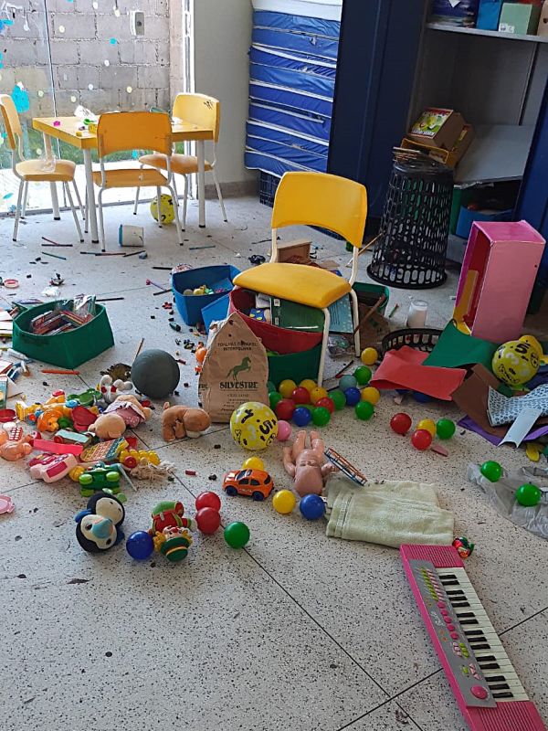 Segundo a Secretaria de Educação, o espaço foi encontrado revirado, com tinta espalhada pelo chão e pelas paredes, inclusive em áreas que já estavam prontas. Materiais didáticos também foram mexidos e espalhados pelo interior da unidade.