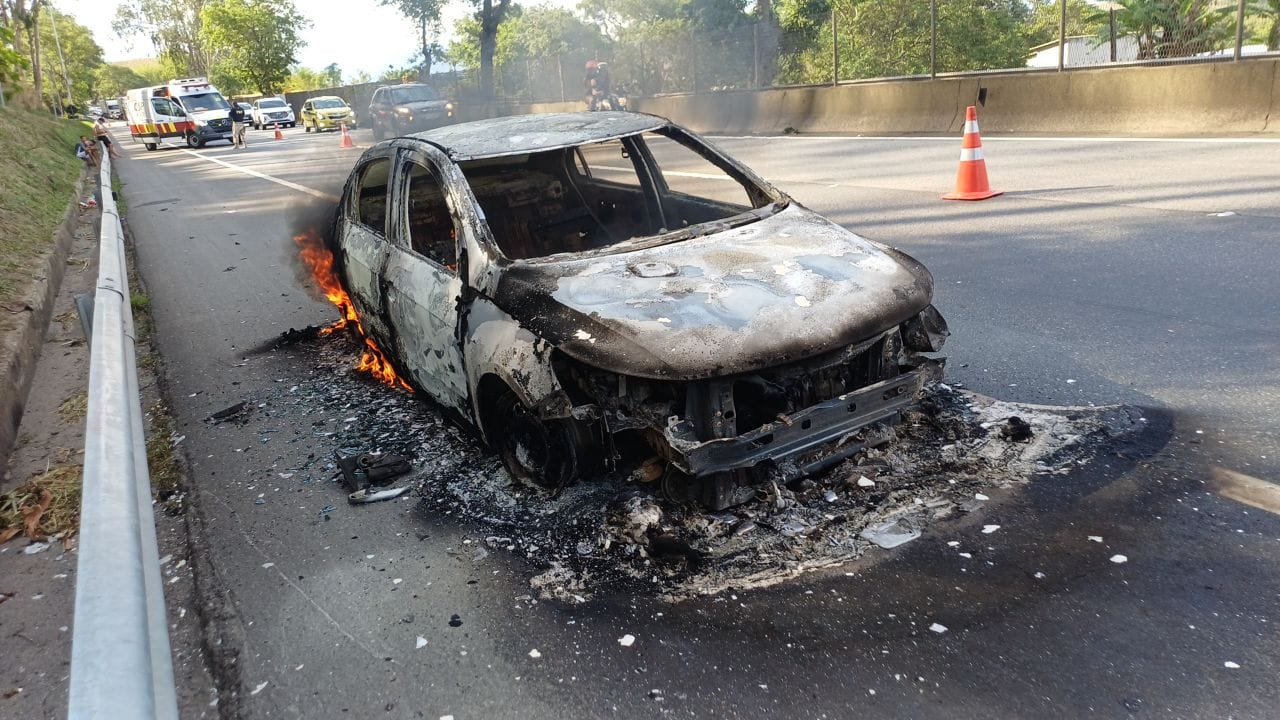Um carro ficou totalmente destruído após pegar fogo na tarde deste domingo, 26, na altura do km 295 da Via Dutra, em Floriano, distrito de Barra Mansa. Segundo a Polícia Rodoviária Federal, os três ocupantes do VW Voyage conseguiram sair a tempo e não se feriram.