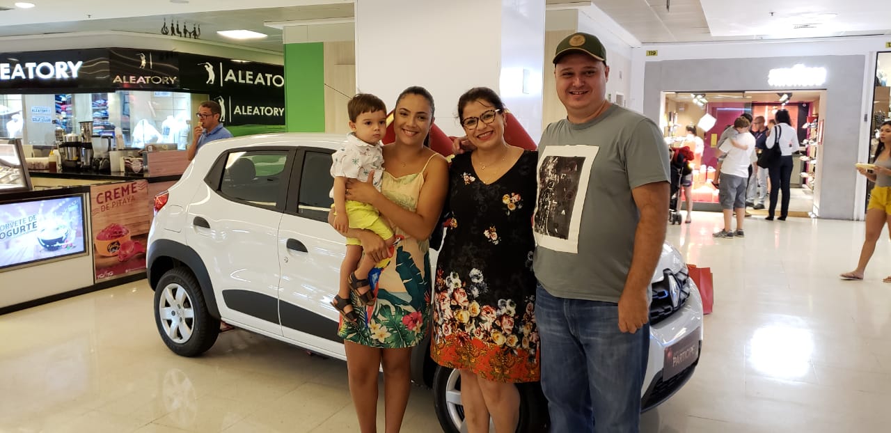 Já a campanha “Natal mágico Sider Shopping” foi encerrada na quarta-feira, 2, com o sorteio do prêmio mais esperado, o carro, da marca Renault, Kwid Life, 1.0, 0Km, Flex, Ano/Modelo 2018/2018. Durante o sorteio realizado pela gerente de marketing do Sider Shopping, Camile Teixeira, no mall do 3º piso, música ao vivo com Jhonny e Juan. Luiza Rodrigues, de 5 anos, foi a escolhida para sortear o felizardo da noite. O grande vencedor, o engenheiro Thiago Toledo Vaz disse que colocou cinco cupons e que foi o filho Benício Toledo quem depositou na urna. “Meu filho me deu sorte, ele quem colocou os cupons na urna. Nunca ganhei nada. Não imaginava que poderia ser o ganhador. Meu filho dizia que íamos ganhar a moto, mas ganhar o carro foi o melhor presente que poderia receber nesses primeiros dias do ano. Eu e minha família estamos muito felizes. Na hora que recebi a ligação e fui informado meu coração disparou!”, contou animado o ganhador do carro.