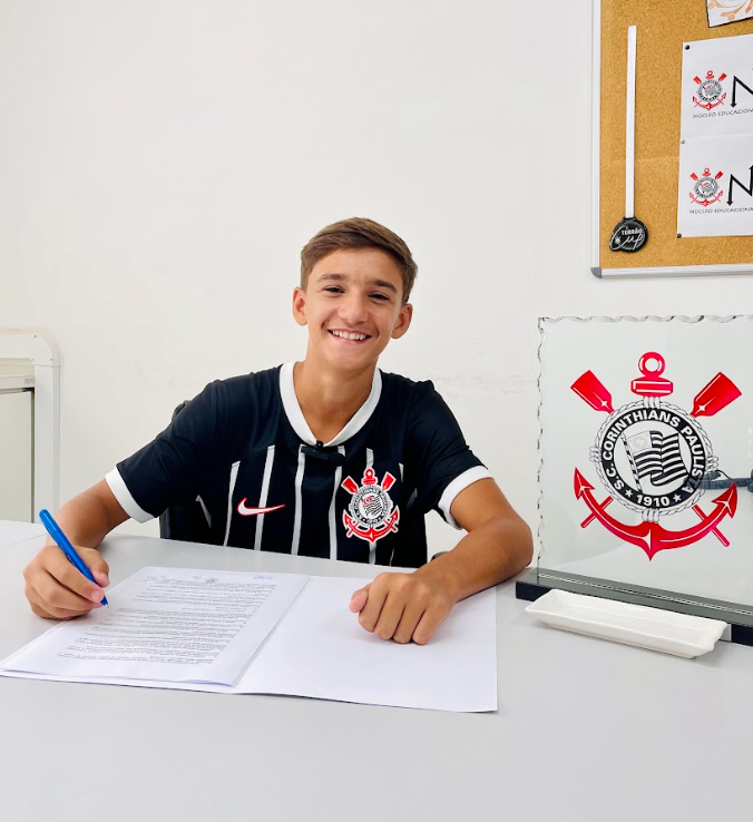 O volante José Araújo Baldanza, de 13 anos, natural de Itatiaia, deu mais um passo importante na carreira ao assinar contrato de formação com o Sport Club Corinthians Paulista, um dos clubes mais tradicionais do futebol brasileiro. A assinatura ocorreu, nesta semana, no Centro de Treinamento Joaquim Grava, em São Paulo, e contou com a presença da família do atleta e de seus empresários.