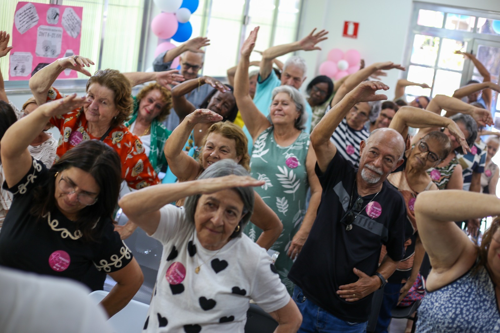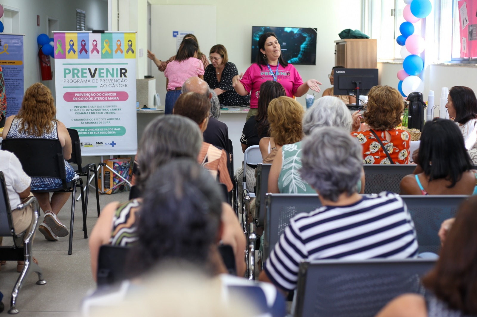 Também foram realizadas: atividade com profissional de Educação Física, sobre cuidado do corpo e da mente através do movimento; conversa com a profissional Rita, que é responsável pela Oficina da Memória; e atividade relacionada à campanha Primavera Rosa, em um momento de valorização e bem-estar das mulheres. “É a primeira vez que eu participo dessa conversa, e eu achei muito bom para todas nós mulheres termos esse momento de informação. Muitas coisas que a gente não tinha ouvido antes a gente ouviu hoje, conheceu várias pessoas com o mesmo problema, iguais, com a mesma chance de ouvir, de esclarecer muitas coisas. É bom que tenha sempre”, comentou a senhora Marlúcia dos Santos Afonso, moradora do Aterrado.
