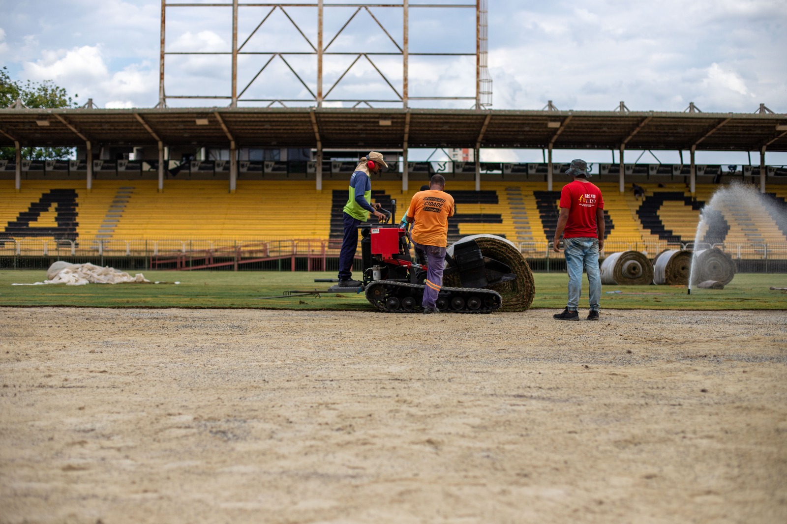 “Nós estamos trocando apenas a parte que ficou sob o hospital de campanha – instalado durante a pandemia de Covid-19 pela gestão anterior da prefeitura – que ficou muito prejudicado. Nesse local, já começou a colocação de grama nova. O campo vai estar num excelente estado no dia 21 de janeiro”, afirmou o administrador do estádio, Milton Alves Faria.