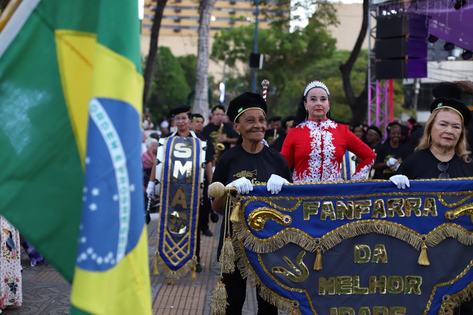 A Fanfarra da Melhor Idade foi a primeira a se apresentar e levou ao palco energia, emoção e carisma, reforçando o protagonismo da pessoa idosa e a importância da convivência na promoção do envelhecimento ativo. A participação na abertura do Natal da Cidadania foi recebida com entusiasmo pelo grupo, que aguardou o momento com grande expectativa.
